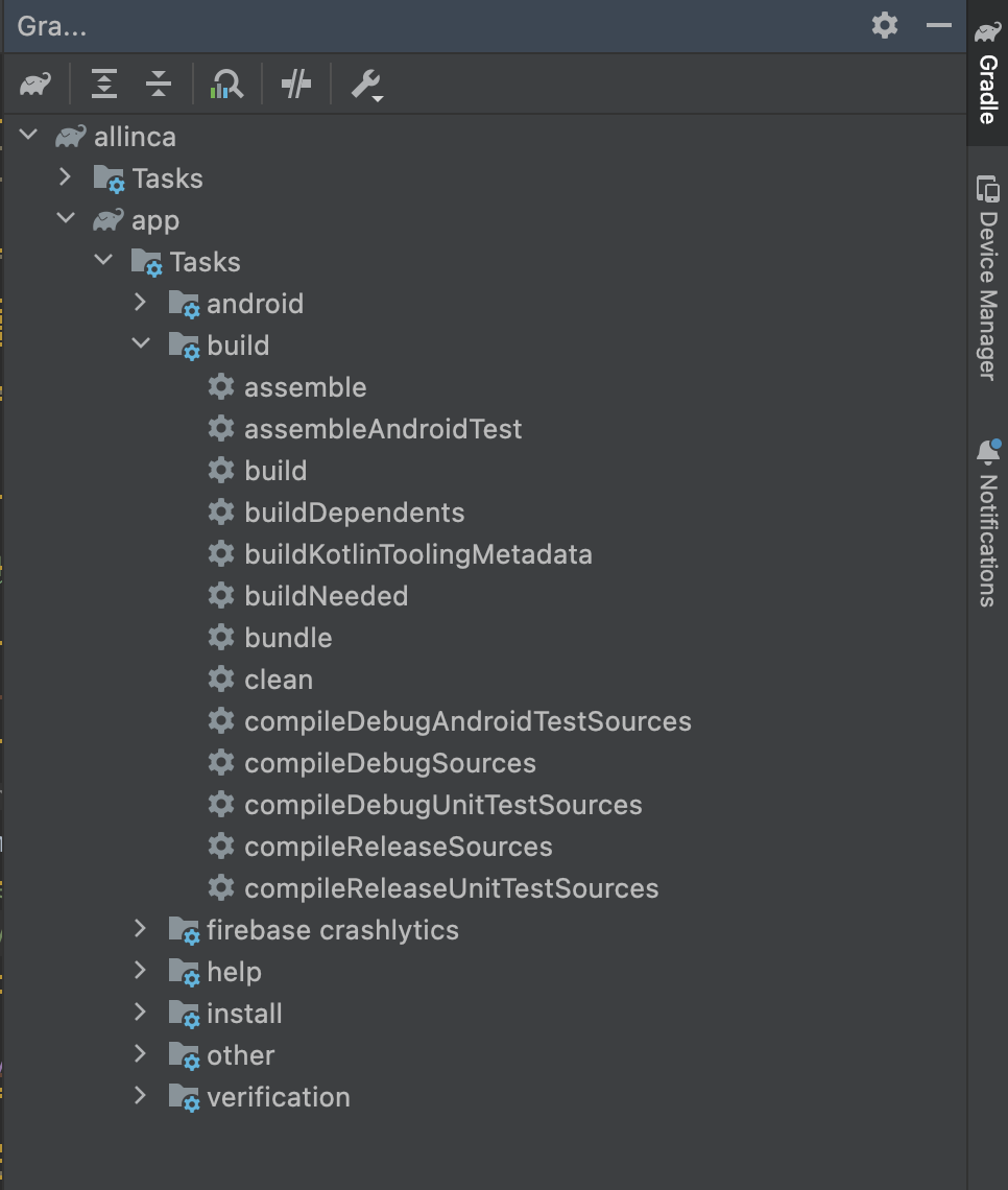 4. app > Tasks > build > bundle 를 더블클릭하면